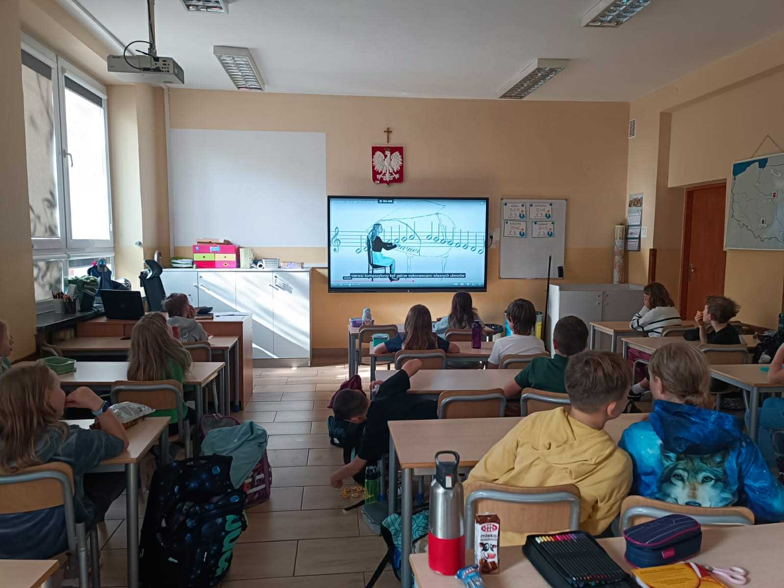 Integracyjne spotkanie muzyczne przeprowadziła asystent międzykulturowy pani Oksana Maslovska we współpracy z wychowawczyniami klas.